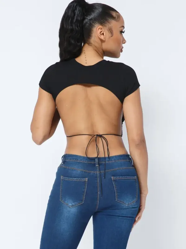 Rib Open Back String Tie Crop Top